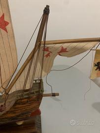 Modellini in legno delle tre caravelle! Solo una si e spezzato un legnetto come vedete nell’ultima foto,penso che con un po di colla qualche ferretto puo’ essere aggiustato! Prezzo non trattabile