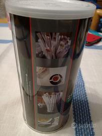 Barattolo di latta con coperchio in plastica, sigillato, nuovo, contenente bustine di zucchero slim-lunghe