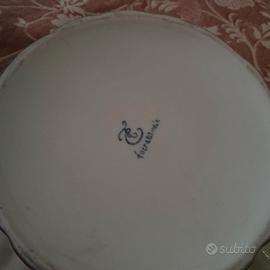 Zuppiera francese Vintage in porcellana con decorazioni blù e oro