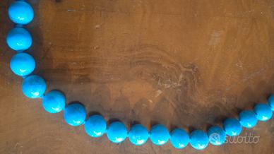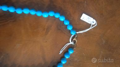 Collana Vintage in corallo rosa e pietra azzurra no turchese