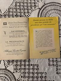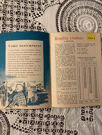 Interessante libretto pubblicitario vintage “Buoni Rendita”, relativo a un sistema di risparmio e previdenza diffuso in Italia alla fine degli anni ’50. Il pieghevole illustra il funzionamento dei buoni raccolti tramite acquisti nei negozi convenzionati, che potevano essere convertiti in premi assicurativi o in una rendita vitalizia (pensione). Il sistema era promosso dall’Organizzazione Previdenza Vitalizia S.p.A. (O.PREV) in collaborazione con compagnie assicurative e con la Banca Commerciale Italiana, le cui filiali sono elencate nelle ultime pagine del libretto. Il documento testimonia un periodo storico in cui molti lavoratori italiani non avevano ancora una pensione pubblica, soprattutto artigiani e piccoli commercianti. La copertina illustrata rappresenta un tipico esempio di grafica pubblicitaria italiana del boom economico. Nel libretto sono illustrati buoni da 500, 1000 e 2000 lire, che negli anni ’50 rappresentavano un risparmio significativo per molte famiglie. Il libretto è composto da 23 pagine e non è solo un semplice pieghevole pubblicitario ma una piccola guida che spiega il funzionamento dei Buoni Rendita con esempi e tabelle. Libretti come questo venivano spesso distribuiti nelle botteghe artigiane e nei piccoli negozi di quartiere negli anni ’50. Questo esemplare proviene dalla bottega di mio suocero, artigiano pellettiere e ombrellaio a Trieste, dove è stato ritrovato insieme ad altri documenti dell’epoca. Il libretto proviene dalla mia famiglia a Trieste ed è stato conservato con cura nel tempo. Scheda tecnica Periodo: circa 1957-1960 Pagine: 23 Misure: 17 × 12,5 cm Peso: circa 20 g Condizioni: ottime