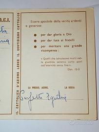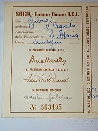 tessera di riconoscimento Unione Donne di Azione Cattolica 1962