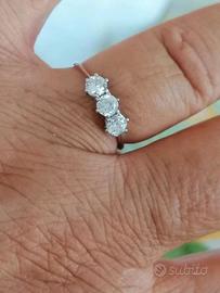 Anello in oro bianco 750 con tre zirconi luminosi GRANDI VERO AFFARE bellissimo nuovo MISURA 16