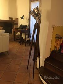 NELLISSIMA LAMPADA INDUSTRIALE CON FARO TEATRALE SU CAVALLETTO DI LEGNO ANTICO PERFETTAMENTE FUNZIONANTE FARO DIREZIONALE VERSO L’ALTO O IN BASSO ANCHE IL CAVALLETTO E ALLUNGABILE SI PUO’ COLLOCARE IN QUALUNQUE STILE DI ARREDAMENTO DANDO QUEL TOCCO VINTAGE CHE FA LA DIFFERENZA
