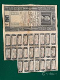 PRESTITO REDIMIBILE 5 PER CENTO del REGNO D'ITALIA - n° 4 cartelle da 100 lire + 1 cartella da 500 lire serie G anno 1937 ognuna con 25 cedole semestrali.