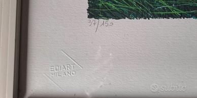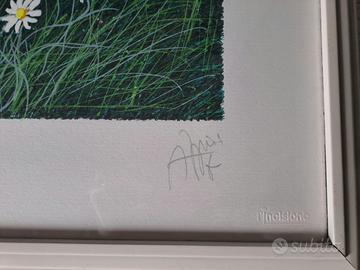 Serigrafia di un tipico campo di fiori.In basso a destra troviamo la firma di Faccincani e a sinistra la numerazione limitata. Non possiedo il certificato. Compreso di cornice,altezza 64 cm,larghezza 84cm