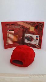 Insieme al berretto sportivo viene messo all'asta il libro celebrativo degli 11 anni di successi del Super Campione Michael Schumacher alla Ferrari con all'interno il francobollo dedicato al vincitore e lo stemma della Casa di Maranello, placcato in oro.