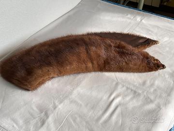 5-collo visone modello sport,marrone scuro,fodera raso nero con disegni marrone-cm.115x 15-euro 18,00
