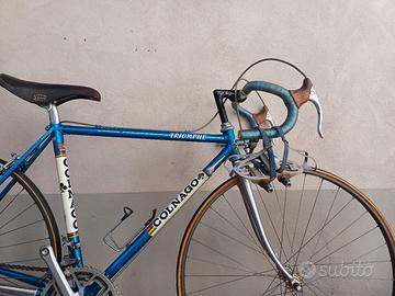 bicicletta da corsa vintage colnago triomphe, taglia piccola, misure centro centro tubo orizzontale 51cm e tubo verticale 53cm, completa al 100%, tutto campagnolo thriomphe, cerchi ambrosio colnago corse, ben conservata.