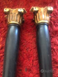 Coppia di colonnine in legno e foglia oro. Altezza 50 cm