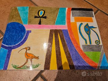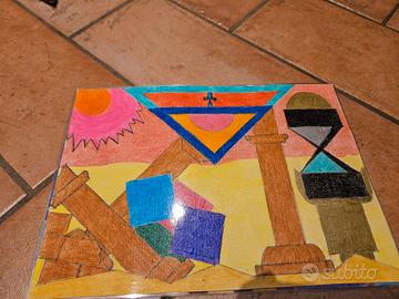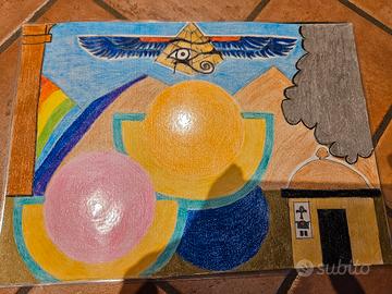 Creazioni a mano su foglio disegno ruvido colori supermina superlaccato, visioni passato presente futuro plastificati A4