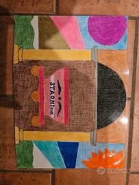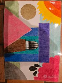 Vendo, creazioni fatte a mano con colori supermina fogli plastificati, sull'asfalto presente futuro e fantasia. Opere plastificate