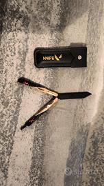 Ho comprato questo coltellino perché sono fan del videogioco Valorant ma lo vendo perché è fermo in un angolo a prendere polvere senza che nessuno gli dia qualche sguardo. Avviso che c'è una tentata affilatura poiché volevo renderlo più realistico di quanto già sia. Eventuali graffi e malformazioni sulla pittura nella lama sono stati causati dall'azienda che l'ha prodotto.