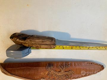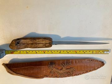Completamente fatto a mano lama acciaio inox speciale per caldaie manico ricavato da radica di ulivo dinoltre 100 anni custodia di cuoi € 190