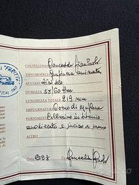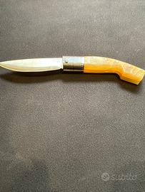 vendo coltello realizzato a mano in corno di muflone e lama in acciaio inox 58/60 con una lunghezza totale di 219 mm.