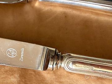 Coltello da formaggio a 2 punte (rif A) Zaramella Argenti in argento Sterling 925 Collezione Inglese: Creata nel 1969, la semplicità della collezione "Inglese" ottenuta dalle linee eleganti di queste posate la rendono assolutamente intramontabile e un must-have per ogni occasione. Rappresentano la combinazione tra praticità e delicatezza. Si adattano perfettamente a qualsiasi stile di stoviglie. Punta in acciaio inox 18/10.