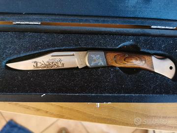 Raro Coltellino Tascabile Mammut Rostfrei 25430 Acciaio Decorato e Legno Nuovo. Inciso a mano dai sardi