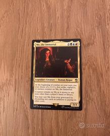 Deck costruito per giocare una strategia midrange/voltron resiliente, dove il comandante è il vero motore della partita. Me, the Immortal è difficile da rimuovere in modo definitivo e questo permette di investirci risorse senza paura: potenziamenti, equipaggiamenti e aure diventano valore reale, non un rischio. Il mazzo punta a far crescere una minaccia singola enorme 💪 grazie a carte come Gigantiform, Mantle of the Wolf, Lion Heart e vari boost temporanei (Brute Force, Sure Strike, Aggressive Urge), mantenendo pressione costante sugli avversari. Gli effetti di intimidazione e evasione (Boldwyr Intimidator, Suspicious Bookcase, Stensia Masquerade) aiutano a chiudere le partite passando sopra le difese. C’è una buona base di ramp e fixing (Urban Evolution, Find the Path, Sphere of the Suns, Commander's Sphere), supporto utilità e controllo leggero (Mana Leak, Clear Shot, Arachnus Web, Will of the Naga) per non restare mai scoperti. Alcune creature e sinergie “value” permettono di recuperare risorse e tenere il ritmo anche nelle partite più lunghe. Mazzo ideale per chi ama uno stile aggressivo ma ragionato, con partite dinamiche e finali esplosivi 🔥. Pronto da giocare, perfetto per tavoli casual/medio power. Il mazzo non contiene terre base