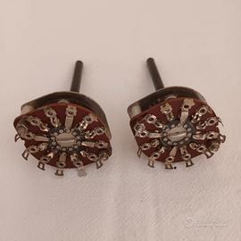 Vendo in blocco n°2 commutatori rotativi Geloso modello 2006, 2 posizioni 4 vie, NOS fondo di magazzino, corredati da un'unica scatola originale. L'alberino, tondo non scanalato, ha diametro 6 mm ed altezza 7 cm dalla flangia del commutatore.