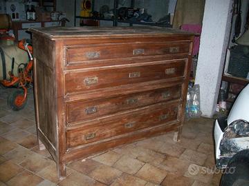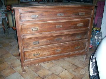Comò a 4 cassetti, fine '800 - primi '900. In buono stato. Misure: lunghezza cm 125, profondità cm 53, altezza cm 100. Da restaurare. Tel. 339 67 97 424