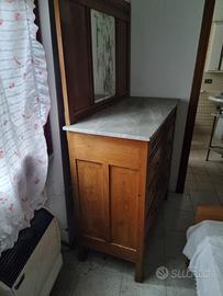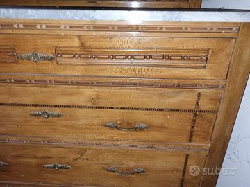 Comò antico in legno (probabilmente noce), risalente alla fine del XIX, con un caratteristico piano in marmo.