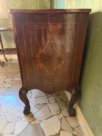 Vendo elegante comò antico risalente alla fine dell’Ottocento / primi Novecento, realizzato in stile Umbertino con ispirazione Luigi XV. Un mobile di grande fascino, caratterizzato da intarsi floreali, linee mosse e gambe cabriolet che terminano in piedi scolpiti.