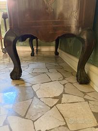 Struttura massiccia, fianchi e fronte lastronati, piano intarsiato e ferramenta coeva. Perfetto per arredare una camera, un ingresso o un salotto con un tocco di eleganza classica.