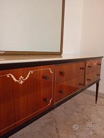 Comò specchio e 6 cassetti vintage, per rinnovo. Il piano in marmo riporta dei piccoli buchi dovuti all'utilizzo e piccole parti da restaurare come vedete nelle ultime due foto