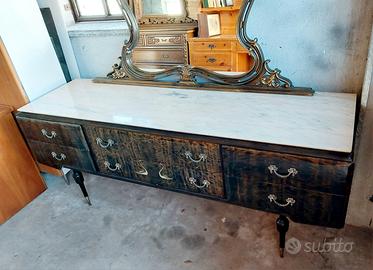 Como' a 6 cassetti con ripiano in marmo compreso di prestigiosa specchiera e due comodini anch'essi con ripiani in marmo vendo il tutto a soli 100 euro Tel.339 355 9827 Albino posso valutare per eventuale consegna.