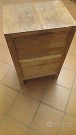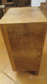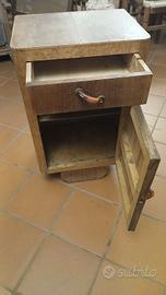 Comodino vintage, probabilmente risalente alla prima metà del Novecento (circa anni '20-'40). Caratteristiche del mobile Questo pezzo presenta elementi tipici dei mobili dell'epoca, in particolare nello stile Art Déco o razionalista, caratterizzato da linee più pulite e funzionali rispetto agli stili precedenti. Materiali: Realizzato in legno di noce o impiallacciato in noce, con possibili dettagli in radica. Struttura: È composto da un cassetto superiore e un vano inferiore con anta a battente. Maniglie: Presenta maniglie originali in metallo, tipiche del design del periodo.