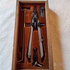 Compasso usato in ambito scolastico. Primi anni 90. Completo di ogni suo pezzo.