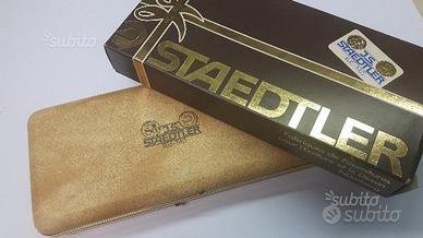 Introvabile. Edizione speciale giubileo J.S. STAEDTLER 1835-1985. Placcato in oro 14kt. Completo di astuccio e copri astuccio in cartoncino. Perfettamente funzionante. Dotato unicamente di sistema di scrittura a china.