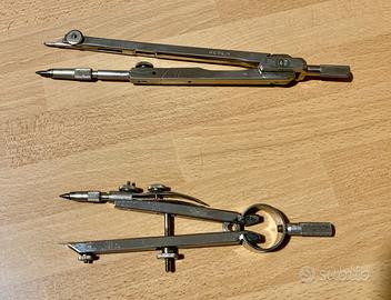Compasso Original Werein modello studio S II W. Fabbricazione svizzera anni ‘70 con astuccio in plastica grigia. Comprende 7 pezzi inclusi compasso tradizionale, balaustrino, tiralinee a china e prolunghe.