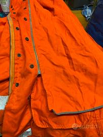 Giacca e pantalone Nomex da intervento vigili del fuoco. La giacca è completa di mantellina e del rivestimento interno staccabile con cerniera. In ottimo stato di conservazione e non esposto alle fiamme. Anche il pantalone abbinato è in perfetto stato di conservazione e mai utilizzato. Si vende il completo. Astenersi perditempo.