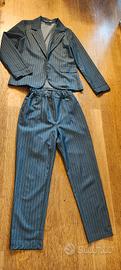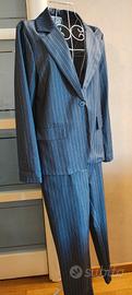 Elegante tailleur gessato da donna composto da giacca e pantaloni. - Giacca dal taglio classico. - Pantaloni con elastico in vita e pinces. Taglia S. Pari al nuovo in quanto indossato sola 1 volta x cerimonia Per la donna che ama essere elegante con quel tocco di classe che il tailleur riesce ad offrire.