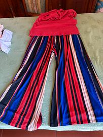 Pantaloni palazzo con elastico in vita, taglia unica nelle varianti verde e rosso maglia verde in ciniglia con traforo, elegante nel suo genere, per chi vuole fare una passeggiata serale in città e al mare!