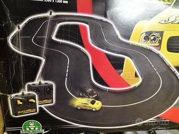 Vendo solo i componenti della pista (tipo polistil) scala 1.32 nella sua scatola originale. Sviluppo tracciato 5.56 mt, pista aperta 2.56 x 1.36 mt. Nuova la pista non è mai stata montata, le 2 auto radio comandate non funzionano.