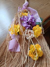 composizione fiori su scopa