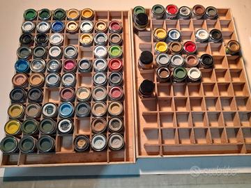 Più un’ottantina di vari colori HUMBROL MOLAK e simili. Molti usati, qualcuno ancora intonso. Sono fermi da anni.