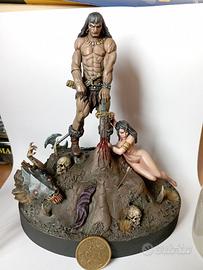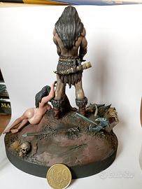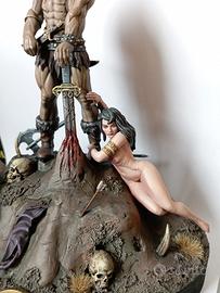 stampa 3d in resina dipinta mano conan il barbaro diorama arte frazzetta con base di legno.