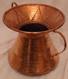 Conca Abruzzese in Rame. Autentica, dei primi 900, molto ben tenuta. È alta cm 26, é larga cm 26 sia all'apertura in alto sia alla base. Larga cm 40 compresi i manici.