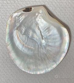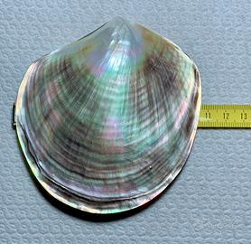 Conchiglia di madreperla naturale Pinctada margaritifera, dai riflessi iridescenti e colori cangianti.