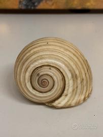 Bellissima conchiglia di grandi dimensioni, perfetta come elemento decorativo. - Superficie rigata. - Tonalità beige e marrone.