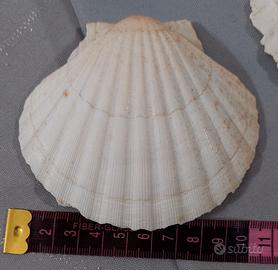 Conchiglie 9 pezzi di capasanta bianche e arancioni vendo in set, per gioielli, decori e ornamento acquario.