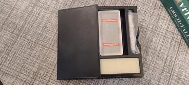 Prodotto attorno al 1990 da Dal Negro, comprende mazzo di carte Trevisane con dorso "Banco Ambrosiano Veneto", gessetto e cancellino.
