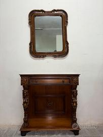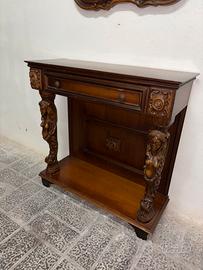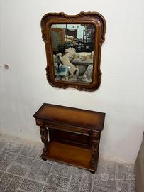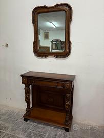 Consolle ingresso intagliato con specchio , ingresso e’ largo 85 cm profondo 32 cm alto 78 cm specchio largo 67 cm alto 80 cm profondo 4 cm