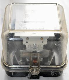 CONTATORE ELETTRICO VINTAGE ANNO 1975, marchiato ENEL, ancora con sigilli originali – misura base in metallo cm. 12 x cm. 17,5 – misura coperchio trasparentre in plastica cm. 12 x cm. 10. Perfetto stato di conservazione come da immagini.