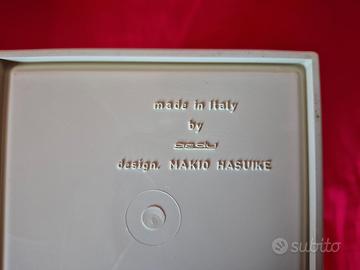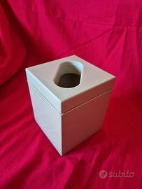 Contenitore in materiale plastico, colore beige, della Gedy made in Italy. Oggetto di modernariato e design prodotto negli anni 70. Designer il giapponese MAKIO HASUIKE che ha progettato oggetti per la Gedy fino al 1979. Condizioni di conservazione ottime; nella parte inferiore, oltre al marchio aziendale, è riportato il nome del designer. Le misure max in cm sono 10 x 10 x 12