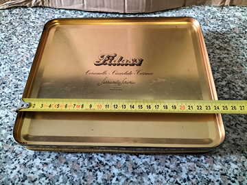 vecchia scatola contenitore in latta pubblicitario vintage da collezione porta dolciumi come caramelle - cioccolato - torrone fidass serravalle scrivia made in italy