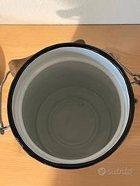 Vecchio contenitore da latte da 3 Litri realizzato in metallo smaltato con manico in legno